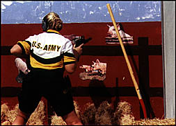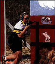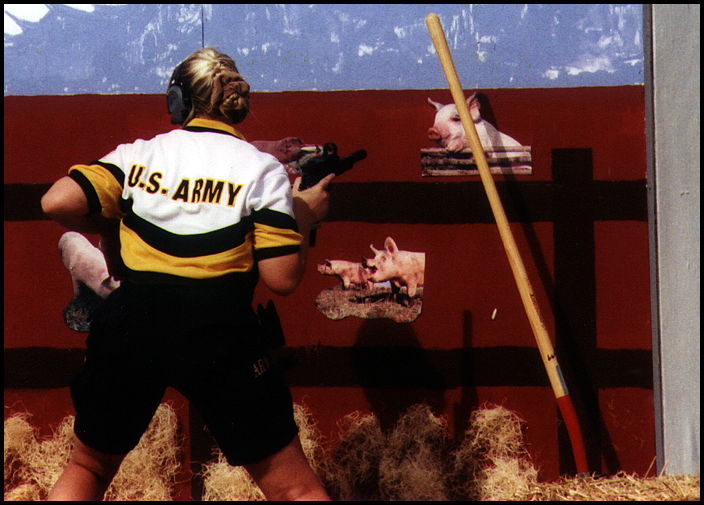 Stage diagram is here. Click on small photos for larger image.Julie Goloski hangs out at the farm with pitchfork stuck in a bale of straw,