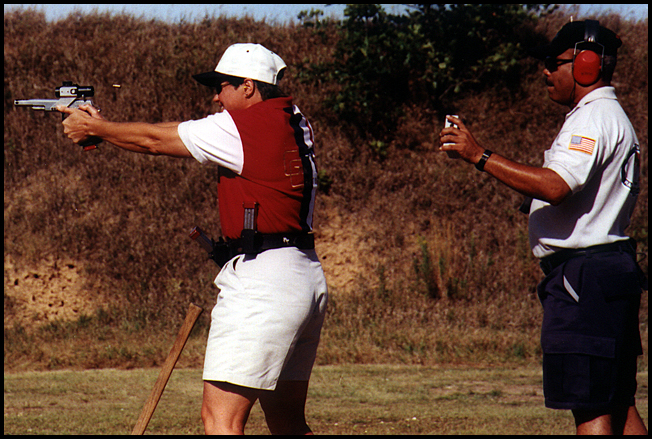 Mike Lovett congratulates Sheila Brey after her blazing 3.74